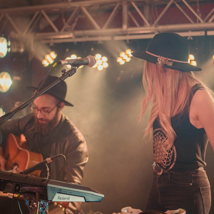 "Gli Hat's Effects stravolgeranno il vostro concetto di Duo. Due voci potenti, una chitarra graffiante e una batteria integrata da un Pad Elettronico fanno diventare questo progetto qualcosa che non avete mai visto. Un vero e proprio Power Duo che vi terrà compagnia durante la serata con pezzi riarrangiati di: Beatles, The Black Keys, Fantastic Negrito, Rival Sons, Franz Ferdinand e molti altri."