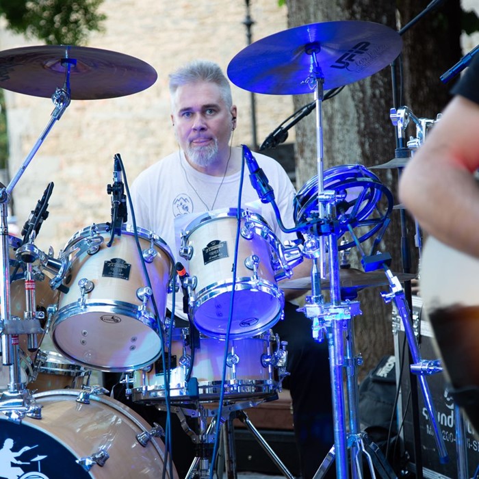 Inizio a suonare la batteria a 16 anni durante gli anni '80, organizzando concerti in alcuni teatrini vicino alla mia abitazione. Da allora non ho mai smesso. Sono fondamentalmente autodidatta, anche se spesso mi dedico a studi vari grazie all'ausilio dei numerosissimi tutorial facilmente disponibili in rete. La mia attrezzatura consiste in una Tamburo Formula e piatti Ufip/Zildjian.